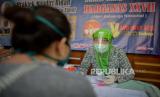 Petugas kesehatan melayani warga saat kegiatan pelayanan KB serentak sejuta Akseptor di Praktek Mandiri Bidan (PMB) Rahayu Prihatina, Cipinang Muara, Jatinegara, Jakarta, Senin (29/6). Badan Koordinasi Keluarga Berencana Nasional (BKKBN) membuka pelayanan KB serentak sejuta akseptor pada puncak peringatan Hari Keluarga Nasional (Harganas) ke-27 di seluruh Indonesia. (FOTO : Republika/Thoudy Badai)