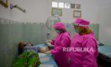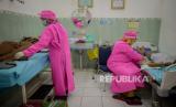 Petugas kesehatan bersiap melayani warga saat kegiatan pelayanan KB serentak sejuta Akseptor di Praktek Mandiri Bidan (PMB) Rahayu Prihatina, Cipinang Muara, Jatinegara, Jakarta, Senin (29/6). Badan Koordinasi Keluarga Berencana Nasional (BKKBN) membuka pelayanan KB serentak sejuta akseptor pada puncak peringatan Hari Keluarga Nasional (Harganas) ke-27 di seluruh Indonesia. (FOTO : Republika/Thoudy Badai)