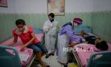 Petugas kesehatan melayani warga saat kegiatan pelayanan KB serentak sejuta Akseptor di Praktek Mandiri Bidan (PMB) Rahayu Prihatina, Cipinang Muara, Jatinegara, Jakarta, Senin (29/6). Badan Koordinasi Keluarga Berencana Nasional (BKKBN) membuka pelayanan KB serentak sejuta akseptor pada puncak peringatan Hari Keluarga Nasional (Harganas) ke-27 di seluruh Indonesia. (FOTO : Republika/Thoudy Badai)