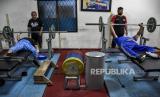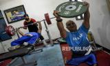 Sejumlah atlet angkat besi menjalani latihan di Gedung NPCI, Komplek Gor Padjajaran, Kota Bandung, Senin (29/6). Atlet angkat besi Jawa Barat kembali menggelar sesi latihan untuk persiapan Pekan Paralimpiade Nasional (Peparnas) XVI di Papua pada Oktober 2021 mendatang setelah sempat vakum selama tiga bulan akibat pandemi Covid-19. Foto: Abdan Syakura/Republika (FOTO : ABDAN SYAKURA/REPUBLIKA)