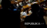 REPUBLIKA.CO.ID, JAKARTA -- Menteri Keuangan Sri Mulyani Indrawati mengikuti rapat kerja bersama Komisi XI DPR di Kompleks Parlemen, Senayan, Jakarta, Senin (29/6).