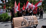 REPUBLIKA.CO.ID, YOGYAKARTA -- Anggota Front Marhaenis Daerah Istimewa Yogyakarta menggelar aksi unjuk rasa terkait polemik Rancangan Undang-undang Haluan Ideologi Pancasila (RUU HIP) di Titik Nol, Yogyakarta, Senin (29/6).