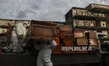 Pekerja mengumpulkan peti mati jenazah yang baru dikremasi di pemakaman La Recoleta, Santiago, Chili, Ahad (28/6). Kasus COVID-19 di dunia mencatatkan angka tertinggi dalam 24 jam terakhir pada Ahad (28/6), dengan jumlah lebih dari 10 juta kasus positif dan 500.000 kematian. (AP Photo/Esteban Felix) (FOTO : AP/Esteban Felix)