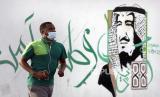 Seorang pria memakai masker saat melewati mural Raja Salman di Saudi Arabia, Ahad (28/6). Kasus COVID-19 di dunia mencatatkan angka tertinggi dalam 24 jam terakhir pada Ahad (28/6), dengan jumlah lebih dari 10 juta kasus positif dan 500.000 kematian. (AP Photo/Amr Nabil) (FOTO : AP/Amr Nabil)