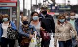 Penumpang bersama seorang perwira polisi saat berjalan di stasiun kereta pusat di Frankfurt, Jerman, Senin (29/6). Kasus COVID-19 di dunia mencatatkan angka tertinggi dalam 24 jam terakhir pada Ahad (28/6), dengan jumlah lebih dari 10 juta kasus positif dan 500.000 kematian. (AP Photo/Michael Probst) (FOTO : AP/Michael Probst)