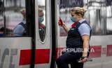 Konduktor saat akan memasuki kereta di stasiun kereta pusat, Frankfurt, Jerman, Senin (29/6). Kasus COVID-19 di dunia mencatatkan angka tertinggi dalam 24 jam terakhir pada Ahad (28/6), dengan jumlah lebih dari 10 juta kasus positif dan 500.000 kematian. (FOTO : AP/Michael Probst)