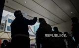 Petugas mengecek suhu tubuh pengunjung di Pasar Tanah Abang Blok A, Tanah Abang, Jakarta, Selasa (30/6). Menurut Camat Tanah Abang Yassin Pasaribu tidak ada penutupan Pasar Tanah Abang Blok A dan B pada Rabu 1 Juli 2020 meski beberapa pedagang diduga positif COVID-19 setelah dilakukan tes swab massal pada Selasa 23 Juni 2020 yang lalu. (FOTO : Republika/Thoudy Badai)