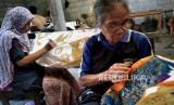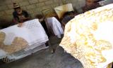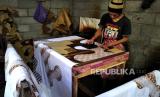 Pekerja menyelesaikan batik tulis di Desa Bulurejo, Lendah, Kulon Progo, Yogyakarta, Selasa (30/6). Kawasan Lendah kini menjadi sentra batik di Kulon Progo. Batik yang dihasilkan ada berupa batik tulis atau batik cap, terutama dengan motif Geblek Renteng. Mulai Juni permintaan batik Lendah mulai naik kembali, usai anjlok pada April dan Mei imbas pandemi Covid19. (FOTO : Wihdan Hidayat / Republika)