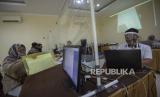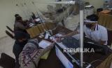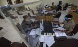Petugas melayani warga yang melaporkan anaknya usai lolos dalam Penerimaan Peserta Didik Baru (PPDB) tahun ajaran 2020/2021 melalui jalur zonasi di Posko Pelayanan PPDB Jakarta Pusat, Jakarta, Selasa (30/6/2020). Pemprov DKI Jakarta menetapkan tahap pelaporan diri siswa yang lolos seleksi PPDB zona zonasi berakhir pada Selasa siang dan dilanjutkan PPDB tahap akhir apabila terdapat sisa kuota di sekolah dengan hanya diperuntukkan bagi calon siswa beridentitias diri asal Jakarta. (FOTO : ANTARA/Aditya Pradana Putra)
