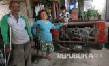 Perakit mobil bertenaga mesin sepeda motor, Subeki menghidupkan kendaraan karyanya di Desa Pelas, Kediri, Jawa Timur, Selasa (30/6/2020). Penyandang disabilitas tersebut menerima jasa perakitan kendaraan angkut pertanian berbahan baku mesin sepeda motor dan rangka mobil bekas dengan tarif antara Rp5 juta hingga Rp7 juta per unit. (FOTO : Antara/Prasetia Fauzani)