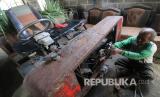 Perakit mobil bertenaga mesin sepeda motor, Subeki memeriksa kendaraan karyanya di Desa Pelas, Kediri, Jawa Timur, Selasa (30/6/2020). Penyandang disabilitas tersebut menerima jasa perakitan kendaraan angkut pertanian berbahan baku mesin sepeda motor dan rangka mobil bekas dengan tarif antara Rp5 juta hingga Rp7 juta per unit. (FOTO : Antara/Prasetia Fauzani)