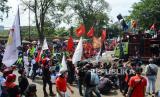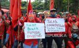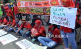 REPUBLIKA.CO.ID, BANDUNG -- Ratusan buruh yang tergabung dalam Aliansi Buruh Jawa Barat menggelar aksi di depan Gedung Sate, Kota Bandung, Selasa (30/6).