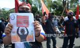Ratusan buruh yang tergabung dalam Aliansi Buruh Jawa Barat menggelar aksi di depan Gedung Sate, Kota Bandung, Selasa (30/6). Dalam aksinya mereka menyampaikan beberapa hal terkait masalah yang dialami para buruh imbas pandemi COVID-19. Mereka menuntut keadilan terkait nasib para buruh yang dirumahkan hingga menjadi korban PHK imbas pendemi Corona. Para buruh juga mendesak Gubernur Jawa Barat Ridwan Kamil untuk segera mengeluarkan Surat Keputusan (SK) Upah Minimum Sektoral Kabupaten/Kota (UMSK) tahun 2020. (FOTO : Edi Yusuf/Republika)