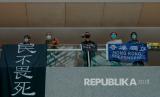 REPUBLIKA.CO.ID, HONG KONG -- Para pengunjuk rasa berkumpul di sebuah pusat perbelanjaan saat protes aktivis pro-demokrasi terhadap undang-undang keamanan nasional Beijing di Hong Kong, Selasa, 30 Juni 2020.