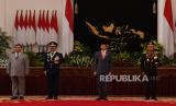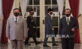 Presiden Joko Widodo (kedua kanan) didampingi Kapolri Jenderal Pol Idham Aziz (kedua kiri) tiba dalam Peringatan Ke-74 Hari Bhayangkara Tahun 2020 di Istana Negara, Jakarta, Rabu (1/7/2020). (FOTO : ANTARA/SIGID KURNIAWAN)