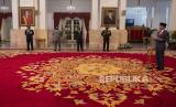 REPUBLIKA.CO.ID, JAKARTA -- Presiden Joko Widodo (Jokowi) memperingati Hari Bhayangkara ke-74 tahun 2020 secara virtual di Istana Negara, Jakarta, Rabu (1/7). Acara berlangsung sejak pukul 08:30 pagi.