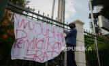 REPUBLIKA.CO.ID, JAKARTA -- Sejumlah pelajar melakukan aksi di depan Gedung Kementerian Pendidikan dan Kebudayaan, Jakarta, Rabu (1/7).