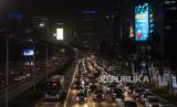 Kendaraan melintas di Jalan Jenderal Sudirman, Jakarta, Rabu (1/7/2020). Pemprov DKI Jakarta resmi memperpanjang Pembatasan Sosial Berskala Besar (PSBB) masa transisi selama 14 hari terhitung mulai 3 Juli hingga 16 Juli 2020. ANTARA FOTO/Sigid Kurniawan/foc. (FOTO : Antara/Sigid Kurniawan)