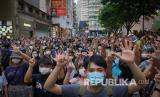 Para pengunjuk rasa menentang undang-undang keamanan nasional yang baru dengan lima jari, menandakan Lima tuntutan - tidak kurang pada peringatan penyerahan Hong Kong ke China dari Inggris di Hong Kong, Rabu, Juli. 1, 2020. Hong Kong menandai peringatan 23 tahun penyerahannya ke Cina pada tahun 1997, dan hanya satu hari setelah Cina memberlakukan undang-undang keamanan nasional yang menindak protes di wilayah tersebut. (FOTO : AP / Vincent Yu)