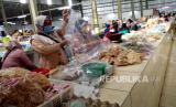 Pedagang menjajakan barang di los pasar pascarevitalisasi di Pasar Gentan, Sleman, Yogyakarta, Kamis (2/7). Pasar Gentan pascarevitalisasi kini memiliki 180 los pedagang dan 26 kios. Dengan model seperti pasar modern diharapkan menambah kenyamanan warga untuk berbelanja. (FOTO : Wihdan Hidayat / Republika)
