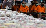 Sejumlah barang bukti narkoba ditunjukkan ketika akan dimusnahkan di Lapangan Promoter Ditlantas Polda Metro Jaya, Jakarta, Kamis (2/7/2020). Satuan Tugas Khusus Polri memusnahkan barang bukti narkoba berupa shabu sebanyak 1,2 ton, ekstasi sebanyak 35.000 butir, dan ganja 410 kilogram dari 25 orang tersangka terdiri dari enam orang warga negara asing (WNA) dan 19 orang WNI dalam kurun waktu Mei hingga Juni 2020. ANTARA FOTO/M Risyal Hidayat/nz (FOTO : ANTARA /M RISYAL HIDAYAT)