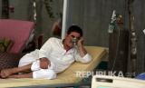 Seorang pria membantu ayahnya untuk minum jus di Rumah Sakit Penyakit Menular Afghanistan-Jepang, untuk pasien COVID-19, di Kabul, Afghanistan, Kamis 18 Juni 2020. Media Afghanistan melaporkan pekan lalu bahwa beberapa pasien COVID-19 meninggal di rumah sakit pemerintah karena kekurangan oksigen medis, meskipun pemerintah membantah laporan tersebut. (FOTO : AP / Rahmat Gul)