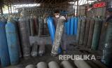 Seorang pria bekerja di sebuah pabrik oksigen di Kabul, Afghanistan, Kamis 18 Juni 2020. Selama tujuh tahun, pabrik oksigen Najibullah Seddiqi tidak bekerja di ibukota Afghanistan, Kabul. Dia menutupnya, katanya, karena korupsi dan pemadaman listrik membuatnya mustahil untuk bekerja. Tetapi ketika coronavirus baru mulai berpacu di negaranya, ia membuka gerbang pabrik yang berdebu dan kembali bekerja. Sekarang dia mengisi ulang ratusan tabung oksigen sehari gratis untuk pasien COVID-19 - dan dengan tarif yang lebih murah untuk rumah sakit. (FOTO : AP / Rahmat Gul)