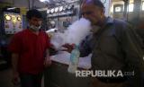 Seorang pria menguji oksigen di sebuah pabrik oksigen milik pribadi, di Kabul, Afghanistan, Kamis 18 Juni 2020. Selama tujuh tahun, pabrik oksigen Najibullah Seddiqi duduk diam di ibukota Afghanistan, Kabul. Dia menutupnya, katanya, karena korupsi dan pemadaman listrik membuatnya mustahil untuk bekerja. Tetapi ketika coronavirus baru mulai berpacu di negaranya, ia membuka gerbang pabrik yang berdebu dan kembali bekerja. Sekarang dia mengisi ulang ratusan tabung oksigen sehari gratis untuk pasien COVID-19 - dan dengan tarif yang lebih murah untuk rumah sakit. (FOTO : Foto AP / Rahmat Gul)