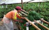 Petani usai memetik tanaman pakis leather leaf usai pemetikan di Kaliangkrik, Magelang, Jawa Tengah, Jumat (7/3). Tanaman Pakis jenis leather leaf ini mayoritas dijual untuk pasar ekspor ke Jepang, untuk dalam negeri masih kecil pasarnya. Potongan daun bagian atas dari Tanaman Pakis jenis ini banyak digunakan untuk hias atau keperluan dekorasi. (FOTO : Wihdan Hidayat / Republika)