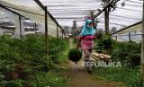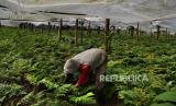 Petani merawat tanaman pakis leather leaf di Kaliangkrik, Magelang, Jawa Tengah, Jumat (7/3). Tanaman Pakis jenis leather leaf ini mayoritas dijual untuk pasar ekspor ke Jepang, untuk dalam negeri masih kecil pasarnya. Potongan daun bagian atas dari Tanaman Pakis jenis ini banyak digunakan untuk hias atau keperluan dekorasi. (FOTO : Wihdan Hidayat / Republika)