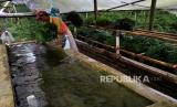 Petani mencuci tanaman pakis leather leaf usia dipetik di Kaliangkrik, Magelang, Jawa Tengah, Jumat (7/3). Tanaman Pakis jenis leather leaf ini mayoritas dijual untuk pasar ekspor ke Jepang, untuk dalam negeri masih kecil pasarnya. Potongan daun bagian atas dari Tanaman Pakis jenis ini banyak digunakan untuk hias atau keperluan dekorasi. (FOTO : Wihdan Hidayat / Republika)