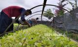 Petani memetik bibit tembakau sebelum ditanam di persawahan Desa Tuksongo, Magelang, Jawa Tengah, Jumat (3/7). Memasuki musim kemarau menjadi waktu untuk menanam tembakau. Daerah Tuksongo satu penghasil tembakau sawah berkualitas tinggi. Sehingga mayoritas perawatan berubah menjadi ladang tembakau saat kemarau. (FOTO : Wihdan Hidayat / Republika)