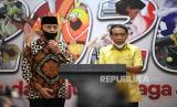 REPUBLIKA.CO.ID, JAKARTA -- Menpora Zainudin Amali didampingi Ketua Umum PSSI Mochamad Iriawan menyampaikan konferensi pers terkait penyelenggaraan Piala Dunia U-20 2021 di Kantor Kemenpora, Jakarta, Jumat (3/7/2020).
