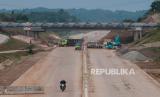 Warga beraktivitas di proyek pembangunan jalan tol Serang - Panimbang di Desa Cikeusal, Kabupaten Serang, Banten, Jumat (3/7/2020). PT Wijaya Karya menjelaskan progres pembangunan jalan tol seksi I Serang sampai Cileles telah mencapai 71 persen dan ditargetkan mulai beroperasi tahun 2021 mendatang. (FOTO : ANTARA/Muhammad Bagus Khoirunas)