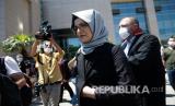 REPUBLIKA.CO.ID, ISTANBUL -- Hatice Cengiz, tunangan jurnalis Saudi yang terbunuh Jamal Kashoggi, menghadiri persidangan in-absentia atas pembunuhan kolumnis Washington Post tersebut yang terjadi pada tahun 2018, di pengadilan Istanbul, Jumat (3/7).