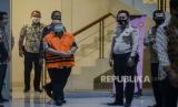 Tersangka Bupati Kutai Timur Ismunandar mengenakan rompi tahanan usai diperiksa di Gedung KPK, Jumat (3/7). KPK menetapkan tujuh tersangka dalam kegiatan tangkap tangan atas kasus korupsi dalam bentuk penerimaan hadiah atau janji terkait pekerjaan infrastruktur di lingkungan Kabupaten Kutai Timur diantaranya Bupati Kutai Timur dan istrinya sekaligus Ketua DPRD Kutai Timur Ence UR Firgasih serta, Kepala Bapenda dengan inisial (MUS), Kepala BPKAD (SUR), Kepala DInas PU (ASW), JA dan AM selaku rekanan dengan barang bukti uang tunai senilai Rp170 juta, Saldo tabungan Rp4,8 Miliar, dan sertifikat deposito sebesar Rp1,2 M. (FOTO : Republika/Thoudy Badai)