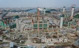 REPUBLIKA.CO.ID, JAKARTA -- Foto udara proyek pembangunan Jakarta International Stadium (JIS) atau Stadion BMW di Jakarta, Sabtu (4/7/2020).