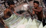 REPUBLIKA.CO.ID, ACEH BARAT -- Pekerja mengumpulkan endapan tepung sagu saat proses pengeringan di salah satu tempat pengolahan di Desa Pasi Aceh Tunong, Meureubo, Aceh Barat, Aceh, Sabtu (4/7/2020).