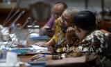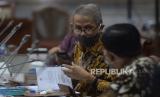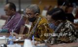 REPUBLIKA.CO.ID, JAKARTA -- Kepala Badan Pelaksana Badan Pengelola Keuangan Haji (BPKH) Anggito Abimanyu saat mengikuti Rapat Dengar Pendapat (RDP) dengan Komisi VIII DPR di Kompleks Parlemen, Senayan, Jakarta, Senin (6/7).