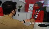 Petugas Customer Service Bank DKI melayani nasabah menggunakan protokol kesehatan Covid-19, (6/7). Bank DKI didaulat sebagai pelayanan terbaik di kategori Bank Pembangunan Daerah (BPD) seluruh Indonesia pada periode 2019-2020 oleh sebua majalah perbankan nasional. (FOTO : Bank DKI )