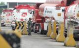 Seorang anggota TNI berdiri di dekat deretan truk tangki sebelum melakukan pendistribusian BBM di Integrated Terminal Balongan, Indramayu, Jawa Barat, Senin (6/7/2020). Pertamina MOR III berupaya memenuhi kebutuhan BBM untuk wilayah Ciayumajakuning (Cirebon, Indramayu, Majalengka, Kuningan) hingga 2.600 KL per hari yang sebagian besar diproduksi di Kilang Pertamina Balongan. (FOTO : ANTARA/Dedhez Anggara)