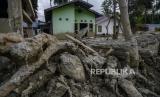 REPUBLIKA.CO.ID, SIGI -- Banjir lumpur menggenanginya Dusun II, Desa Poi, Kabupaten Sigi, Sulawesi Tengah,Ahad (5/7). Selain lumpur, banjir yang terjadi pada sore akibat hujan deras itu juga membawa material bebatuan dan kayu.