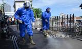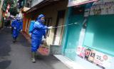 REPUBLIKA.CO.ID, BANDUNG -- Warga melakukan penyemprotan desinfektan saat peremian Kampung Tangguh Nusantara "Lembur Tohaga Lodaya" di RW 07, Kelurahan Babakan Ciamis, Kecamatan Sumur Bandung, Selasa (7/7).