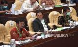 Menteri Pertanian Syahrul Yasin Limpo (kiri) mengikuti rapat kerja dengan Komisi IV DPR di Kompleks Parlemen, Senayan, Jakarta, Selasa (7/7/2020). Rapat itu membahas program strategis kementrian dalam rangka percepatan pemulihan ekonomi dampak COVID-19. (FOTO : Antara/Akbar Nugroho Gumay)