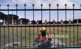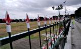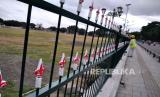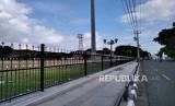 Pagar besi terpasang di tepi Alun Alun Utara Keraton Yogyakarta, Selasa (7/7). Alun Alun Utara Yogyakarta direstorasi dengan memasang pagar besi di bagian tepinya. Pemasangan ini menggunakan dana keistimewaan (Danais) dengan anggaran mencapai Rp 2,3 miliar. Hal ini bertujuan untuk mengembalikan bentuk alun alun sesuai zaman dahulu dan ditargetkan selesai pada Juli mendatang. (FOTO : Wihdan Hidayat / Republika)