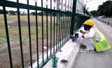 REPUBLIKA.CO.ID, YOGYAKARTA -- Pekerja mengecat pagar besi di tepi Alun Alun Utara Keraton Yogyakarta, Selasa (7/7).