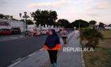 Warga berolahraga saat sore di Alun Alun Selatan Yogyakarta, Selasa (7/7). Aktivitas di Alun Alun Selatan mulai hidup kembali, warga mulai berolahraga atau menghabiskan sore hari bersama anak anak. Namun, bagi pedagang dan penyewaan becak hias dibatasi mulai dari pukul 4 sore hingga 8 malam. (FOTO : Wihdan Hidayat / Republika)