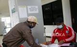 Petugas Gugus tugas (kanan) melayani masyarakat yang mengurus Surat Ijin Keluar Masuk (SIKM) di Posko Gugus Tugas Covid 19 Kota Sorong, Papua Barat, Selasa (7/7/2020). Tim gugus tugas Covid 19 Kota Sorong sejak dibukanya kembali transportasi massal pada awal Bulan Juni secara terbatas, telah mengeluarkan 3.000 lebih SIKM bagi masyarakat yang hendak datang ataupun meninggalkan Kota Sorong. (FOTO : ANTARA FOTO/Olha Mulalinda)
