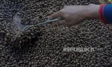 Petani menyortir biji kopi produk Kopi Kingkaf di Bawang, Kabupaten Batang Jawa Tengah, Selasa (7/6/2020). Pengusaha produk Kopi Kingkaf memasarkan produk olahan biji kopi miliknya dari petani lokal hingga ke Melbourne, Australia, dengan harga Rp30.000-Rp85.000 per 100 gram. (FOTO : ANTARA/Harviyan Perdana Putra)