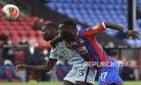 Pemain Chelsea Kurt Zouma (kiri) berebut bola dengan pemain Crystal Palace Christian Benteke pada pertandingan sepak bola Liga Premier Inggris antara Crystal Palace dan Chelsea di Selhurst Park, di London, Inggris,Rabu (8/7) dini hari WIB. (FOTO : Justin Tallis / Pool via AP )